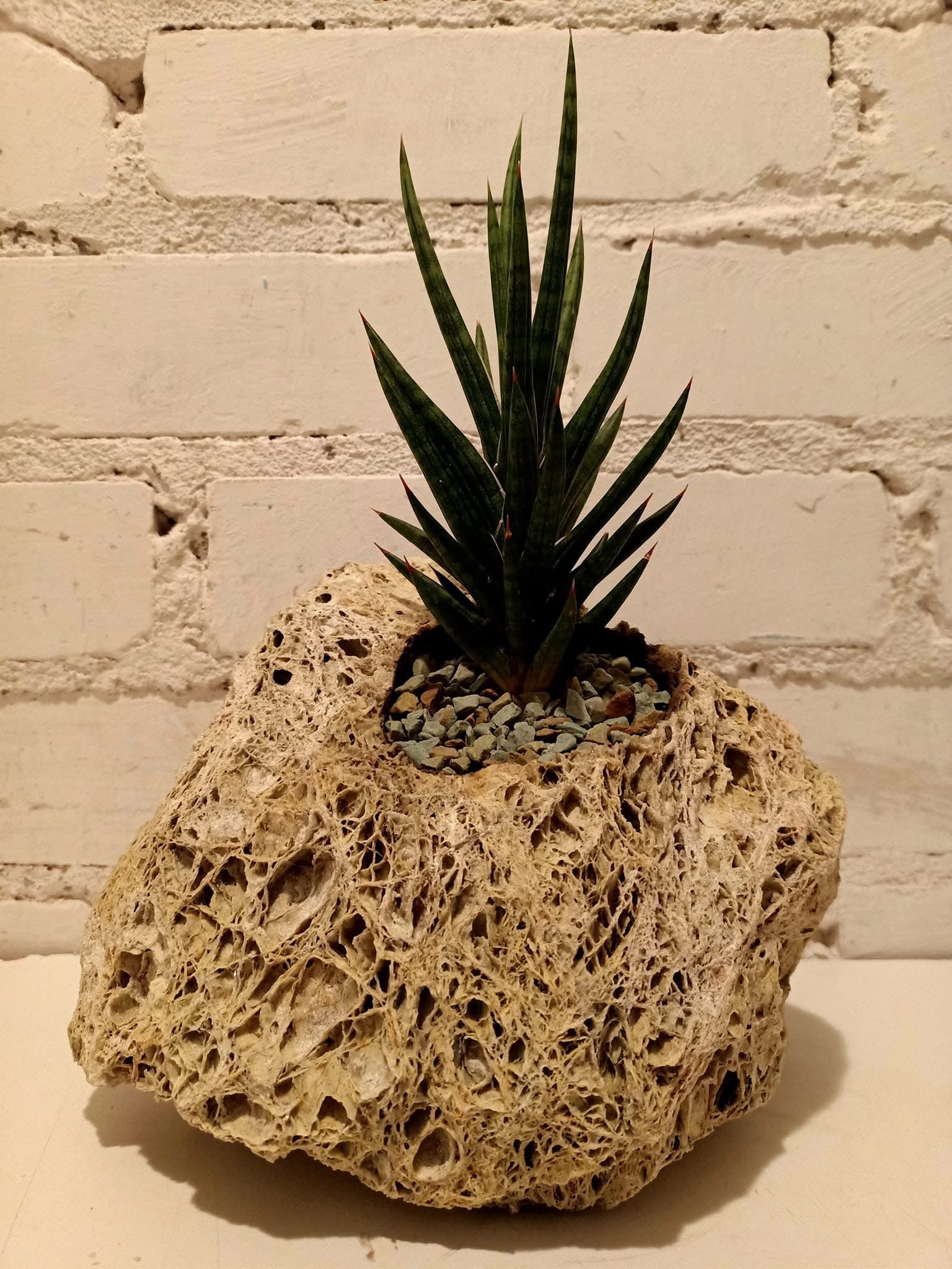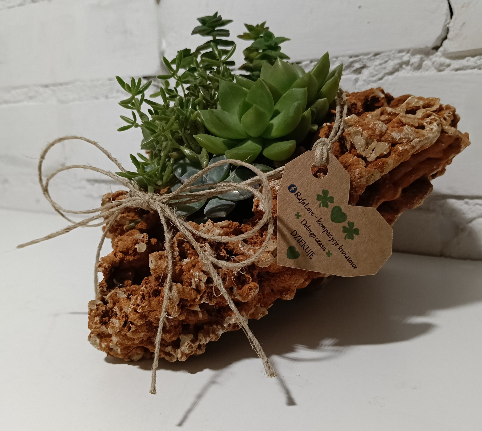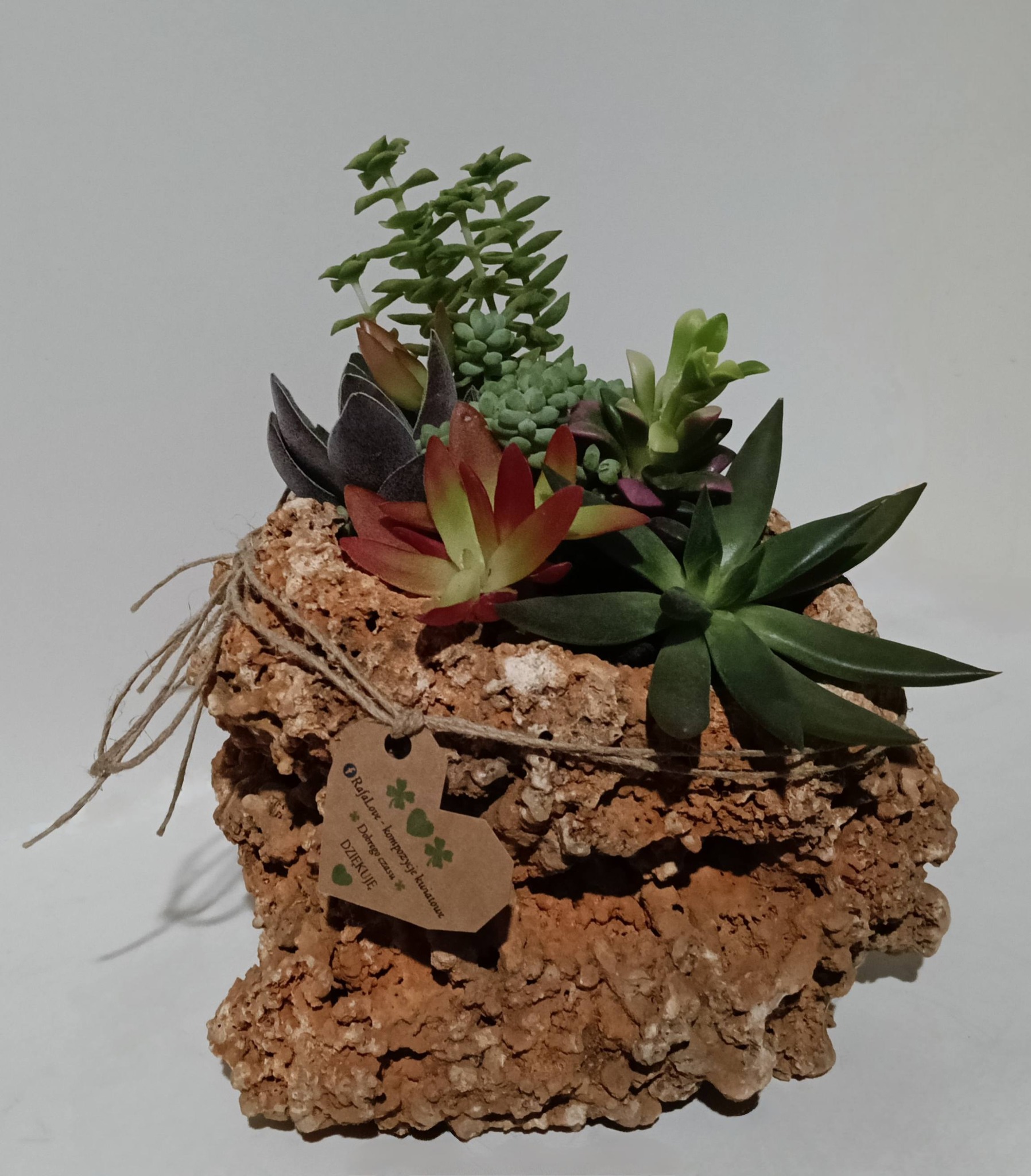 Kompozycje w wapieniu łączą jasne, naturalne struktury kamienia z subtelną zielenią sukulentów, tworząc harmonijny i wyciszający efekt. Porowata faktura wapienia nadaje całości lekkości i organicznego charakteru, a rośliny wkomponowane w jego wnętrze wyglądają jak naturalnie wyrastające z minerału. To dekoracje, które wprowadzają do przestrzeni spokój, światło i delikatną elegancję.