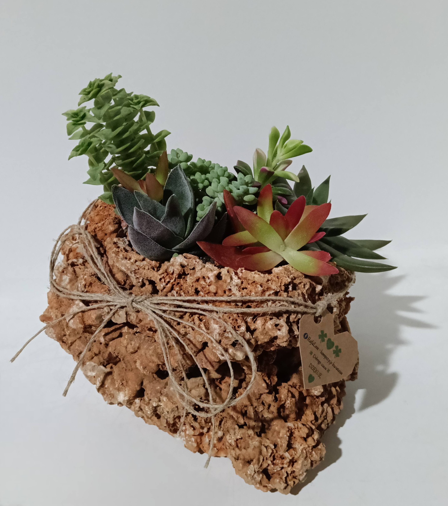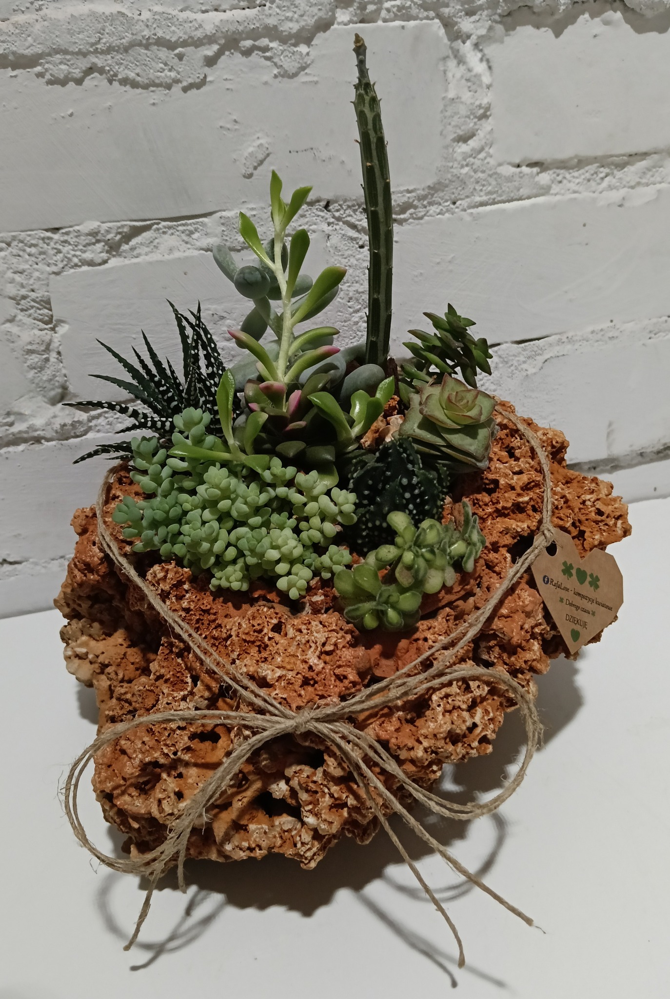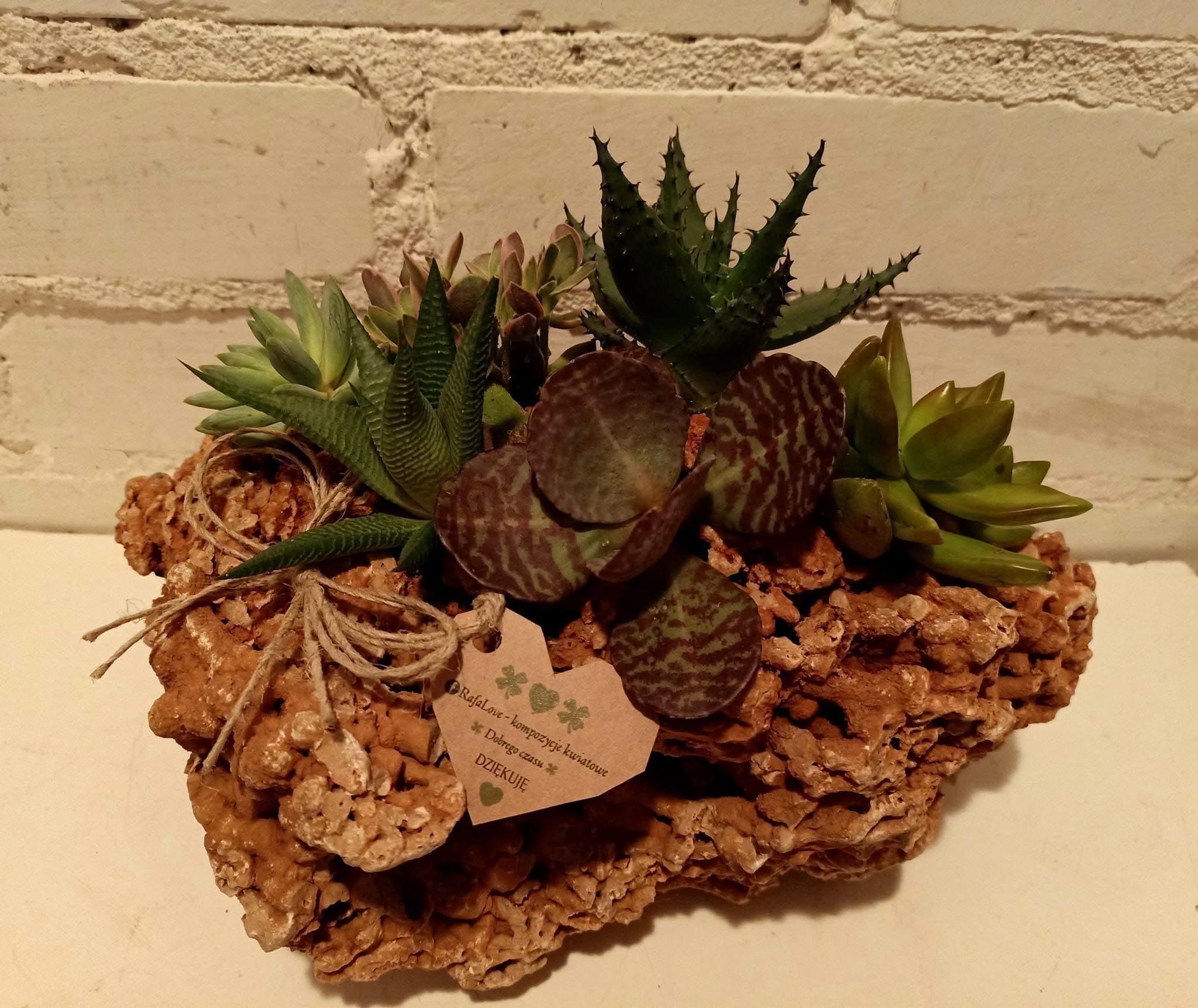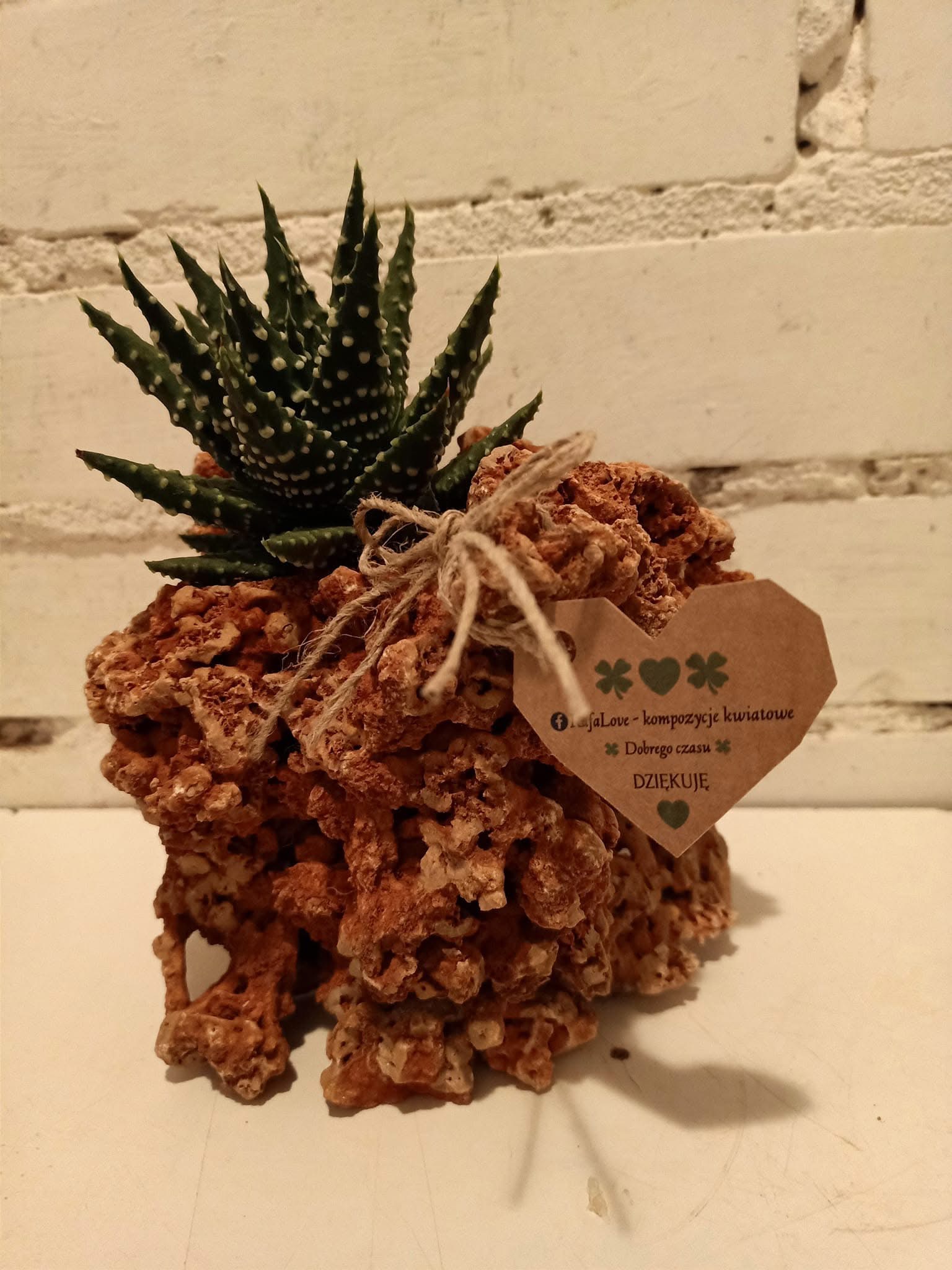 Kompozycje w wapieniu łączą jasne, naturalne struktury kamienia z subtelną zielenią sukulentów, tworząc harmonijny i wyciszający efekt. Porowata faktura wapienia nadaje całości lekkości i organicznego charakteru, a rośliny wkomponowane w jego wnętrze wyglądają jak naturalnie wyrastające z minerału. To dekoracje, które wprowadzają do przestrzeni spokój, światło i delikatną elegancję.